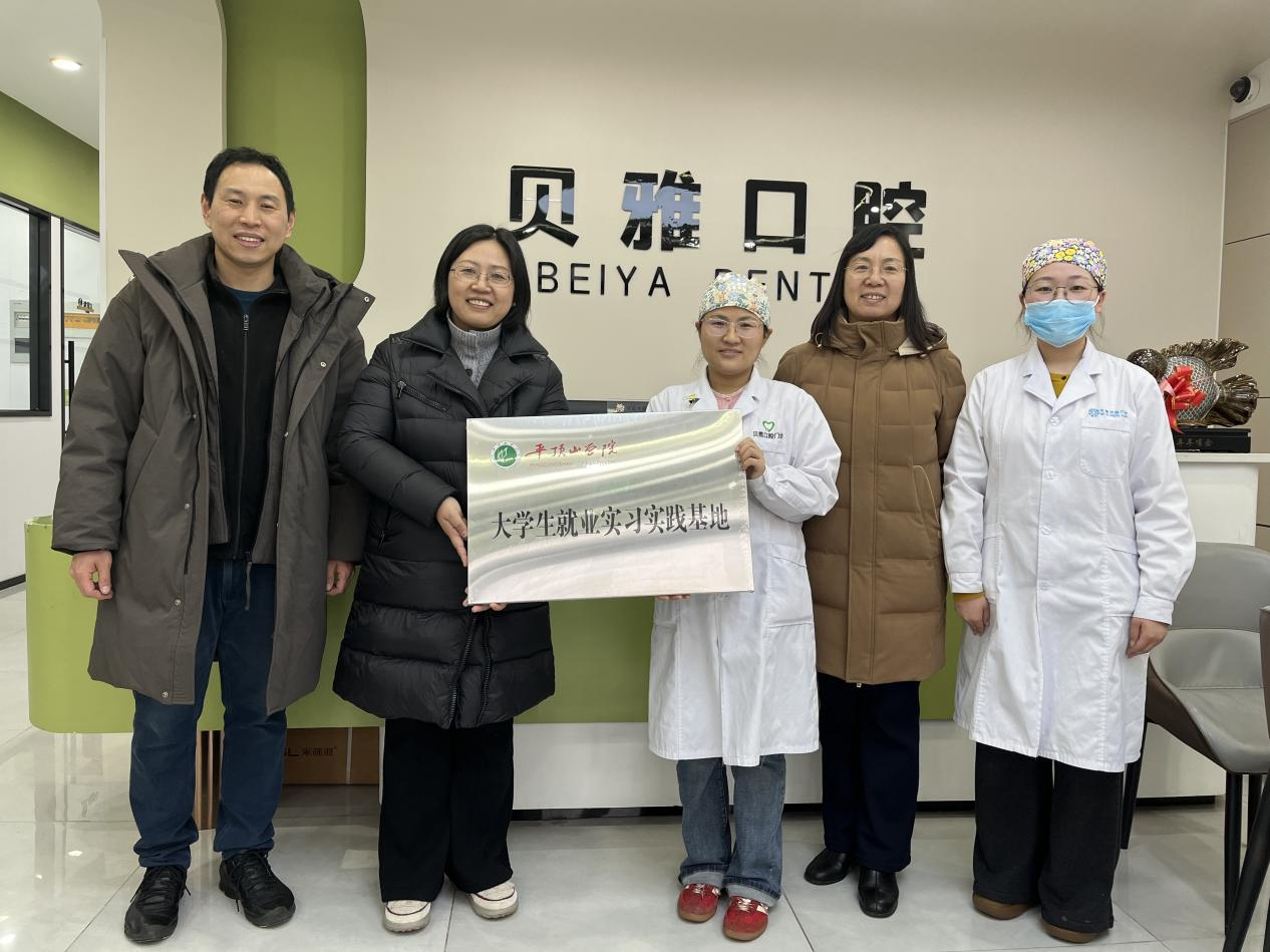 随后,党委书记王莉、院长郑新华一行前往平顶山市贝雅口腔门诊,实地查看就业基地基本条件,调研了毕业生在该单位的就业情况,同时授予其我院大学生就业实习实践基地的牌匾,双方并就实习基地建设、就业跟踪服务进行了洽谈,双方表示,将深化合作共同推进口腔医学人才培养,为毕业生提供更加优质的就业平台。