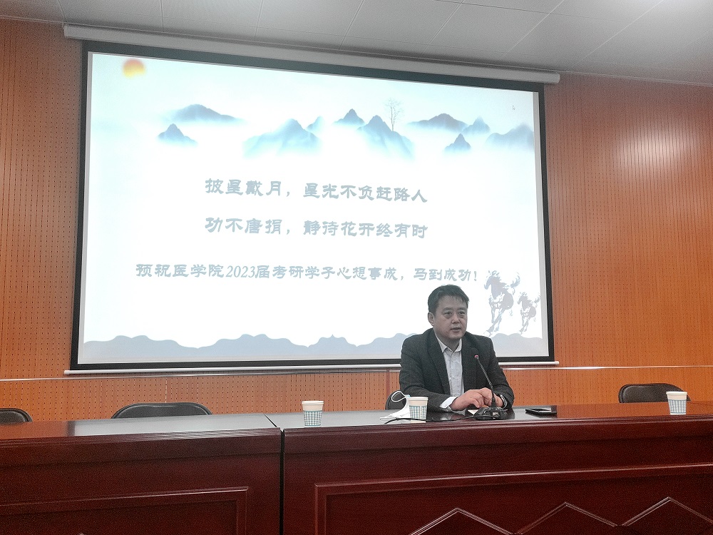 座谈会上,李校长以《唯有踔厉奋发,方有精彩人生》为题发表了讲话。他强调,尽管疫情形势依然复杂,但在党和国家的正确领导下,广大学子奋斗有目标,生活有保障,有充足条件为追求个人目标而努力奋斗。2023届这批疫情“历练”下的考研学子,经历磨炼,更懂得适应和反思,这是生动的教材,让我们遇难事能从容应对,临大事能尽显担当。他希望,广大学子要听党话,跟党走,切实做到学用结合、知行合一,把个人理想融入国家事业发展大局,做一名自信自强、走在时代前列的奋进者开拓者。随后,李校长结合自己的个人经历,生动鲜活地为考研学子指点迷津、鼓舞士气,并对考研学子提出四点要求:一是调整心态,舒缓压力;二是全力以赴,努力发挥;三是相信自己,决不放弃;四是一颗红心,两手准备。