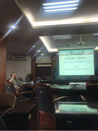 吴教授以“SCI论文设计、写作及评审”为主题,结合个人SCI论文写作、评审和编辑工作经验,详细介绍SCI论文撰写方法、SCI论文发表、科学选题和基金申请等方面的内容。会后吴孔明教授与tyc234cc太阳成集团的老师就SCI论文和国家自然科学基金的写作展开了深入的交流探讨,参会老师在论文和基金写作方面备受启发与鼓舞,进一步推动了tyc234cc太阳成集团科研工作的开展。
