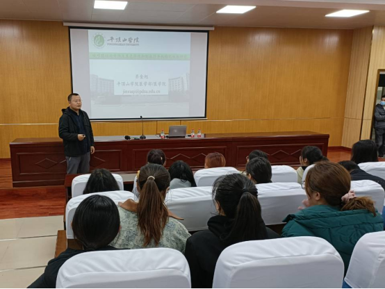 齐金旭博士主要围绕“吡哆醛结构修饰及其选择性抑制拓扑异构酶的机制研究”和医学生考研准备两个方面进行了阐述。首先齐博士以具体的实验研究经历为例向同学们传授科学研究和科研论文写作经验,通过真实事例让同学们感受到科研就在我们身边,给予同学们走向科研的信心。接着齐博士主要从考研准备、如何选择考研院校、考研生活等方面对学生考研进行讲述。