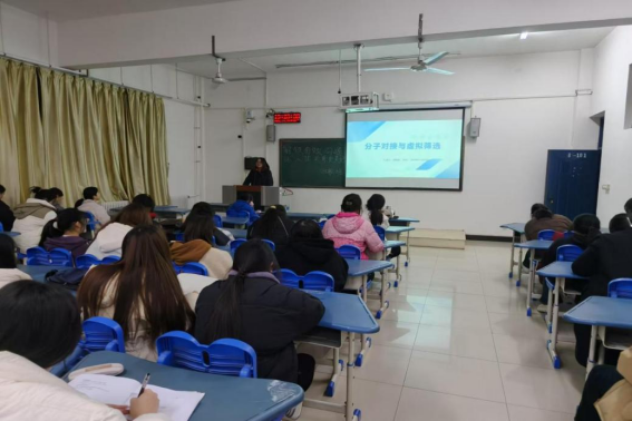 张盼盼博士以《分子对接与虚拟筛选》为题,不仅为学生们提供了选择专业研究内容的丰富而实用的建议,还讲解了如何利用计算机系统预先预测受体与配体的复合物结构。通过生动的比喻,她帮助学生更好地理解了受体与配体之间错综复杂的关系,并详细解析了这一理论背后的原理、应用范围及具体的操作方法。张博士还对比分析了传统药物开发流程及其合成开发模式中存在的不足,进一步阐述了应用分子对接技术在药物设计与发现方面的显著优势。她的讲解特别强调了从疾病出发进行新药开发的新思路,极大地拓展了同学们对药学及药物开发领域的视野与理解,激发了他们对这一前沿科技的兴趣与热情。
