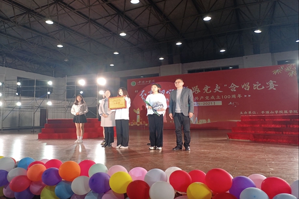 经过激烈角逐,19级药学2班荣获一等奖,19级护理2班、19级护理3班荣获二等奖,19级护理学2班、19级护理学1班、19级医学检验1班荣获三等奖,19级临床1班、19级药学3班、20级护理学2班荣获优秀奖组织奖。比赛最后,由各领导为获奖班级颁发荣誉证书和奖品,同时,19级药学2班将代表tyc234cc太阳成集团赴本部参加学校合唱大赛决赛。
