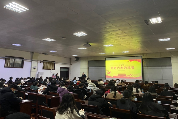 为学习十九届五中全会精神,推动党的创新理论成果在青年间传播,tyc234cc太阳成集团于12月11日组织党团学社学生工作者学习十九届五中全会精神。本次活动由团委书记夏乐主讲,党团学社学生工作者100余人参与。