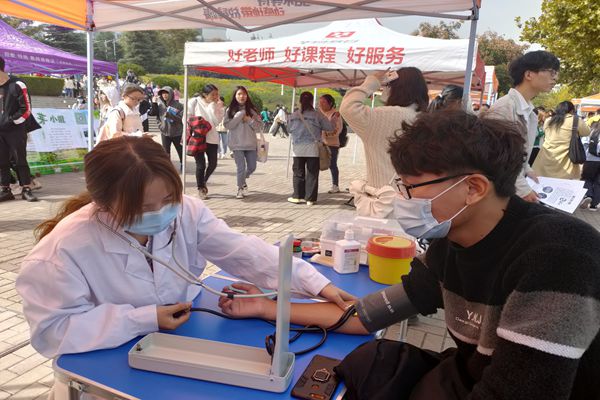 活动开始,爱心医疗服务社成员在扇形广场为前来咨询的学生检查身体状况、测量血压等,细致解答学生的疑问,给学生们普及急救知识、冬季健康常识等,并从专业角度讲述其重要性。与此同时,艺飞扬手语社在舞台上表演手语节目,社团成员们配合默契,动作整齐划一,为在场观众带来一场视觉盛宴。表演过程中,艺飞扬手语社表演同学将手语与音乐完美结合,吸引了在场所有观众的注意,节目表演结束的瞬间,全场响起热烈的掌声。