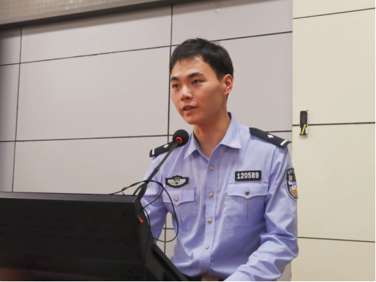 讲座开始,主持人曲默涵向同学们隆重介绍两位警官并宣布讲座正式开始。接着,李警官就如何预防电信诈骗向同学们详细讲解了电信诈骗的危害、常见的电信诈骗手段等七点内容。最后,李警官用视频案例生动地向同学们展示了诈骗分子如何针对不同阶层、不同年龄段来实施诈骗,他希望同学们都能够运用法律的手段来保护自己,不断提升自身反诈意识,不给诈骗分子有机可乘。