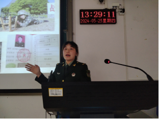活动中,潘笑杏老师首先针对同学们最为关心的升学、就业、经济补助等方面的政策进行了详细的说明。她说,参军入伍不仅有利于磨练自己的意志、实现理想信念,也是青年大学生谋划未来发展的重要选择之一。随后,优秀退役学生代表宋昭含、罗佳琪、周琛博身着军装,分别从自己的亲身经历出发讲述了入伍缘由、军旅生活和从军收获,并号召同学们积极应征入伍,到部队去报效祖国、成就自我。最后,在潘老师对2024年下半年征兵工作流程及时间等事项进行讲解后,活动逐渐走向尾声。