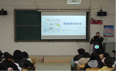 在期末考试动员部分,辅导员老师着重强调了《太阳集团tyc234cc考试管理相关规定摘要》关于违反考试纪律的后果,要保持积极向上的心态,积极复习、认真备考,诚信考试。在寒假安全教育主题部分,辅导员老师围绕交通安全、消防安全、出行安全、网络诈骗等方面向同学们讲解了假期安全的重要性,尤其强调安全无小事,要时刻保持清新的头脑,做到自我保护,提升安全防范的能力。