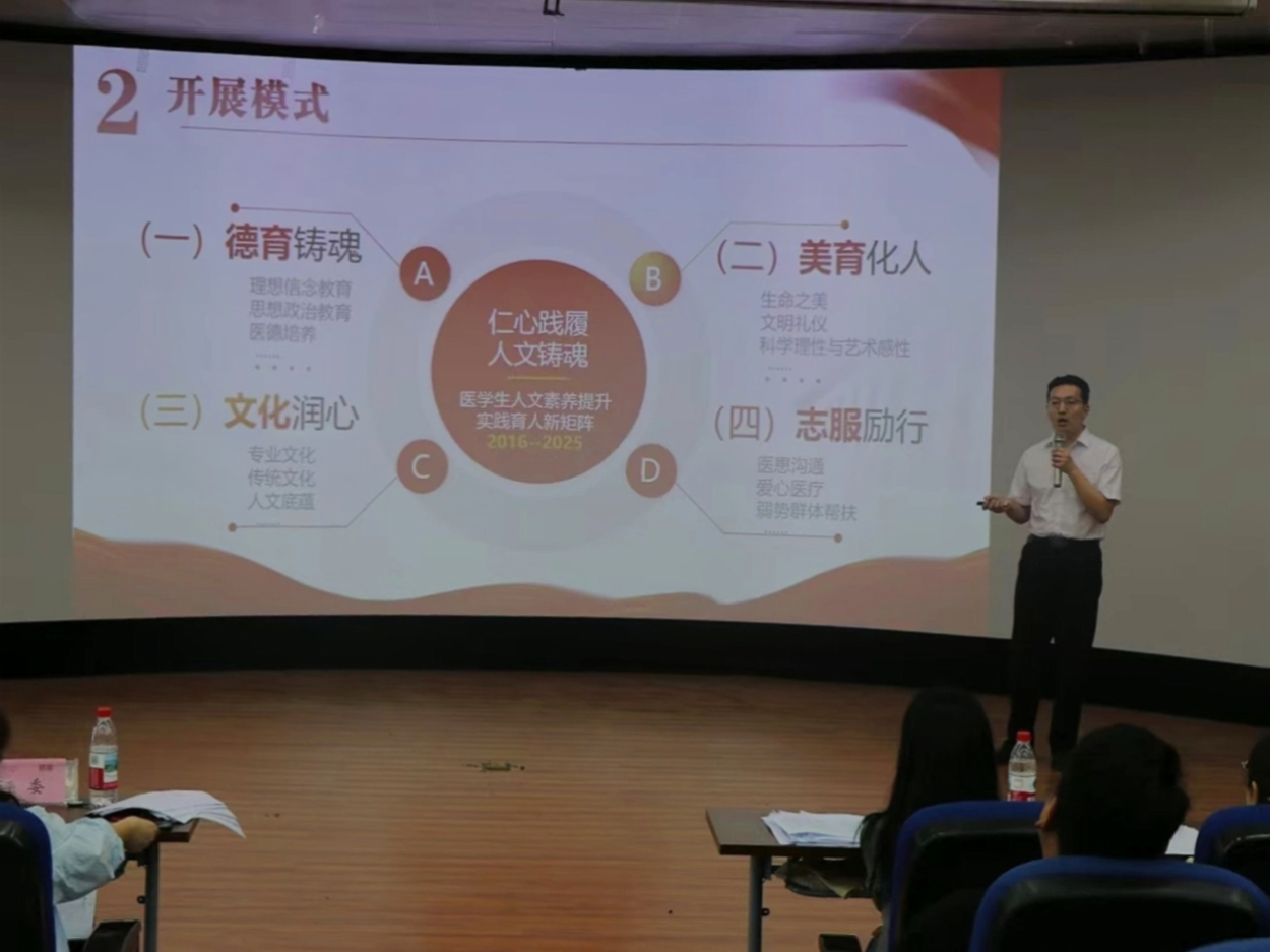 在比赛中,杨凯老师以医患关系现状作为引入,系统呈现学院构建的德育铸魂、美育化人、文化润心、志服励行四维育人体系,展示了tyc234cc太阳成集团共青团基础工作中的实践风采及广大学子良好的精神风貌。经过近两个小时的激烈角逐,《“仁心践履·人文铸魂”医学生人文素养提升实践育人工作项目》喜获一等奖。