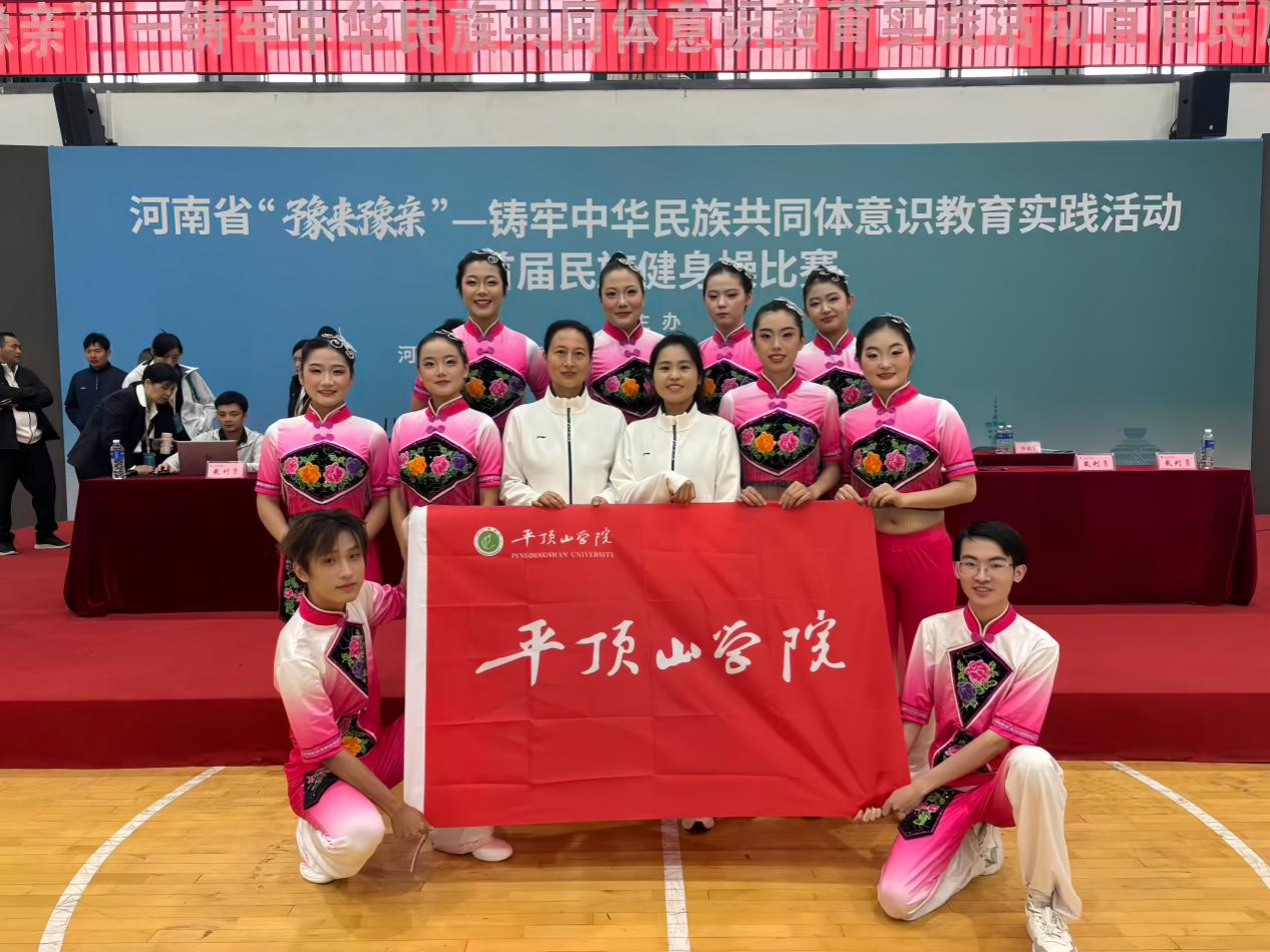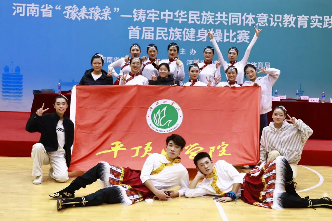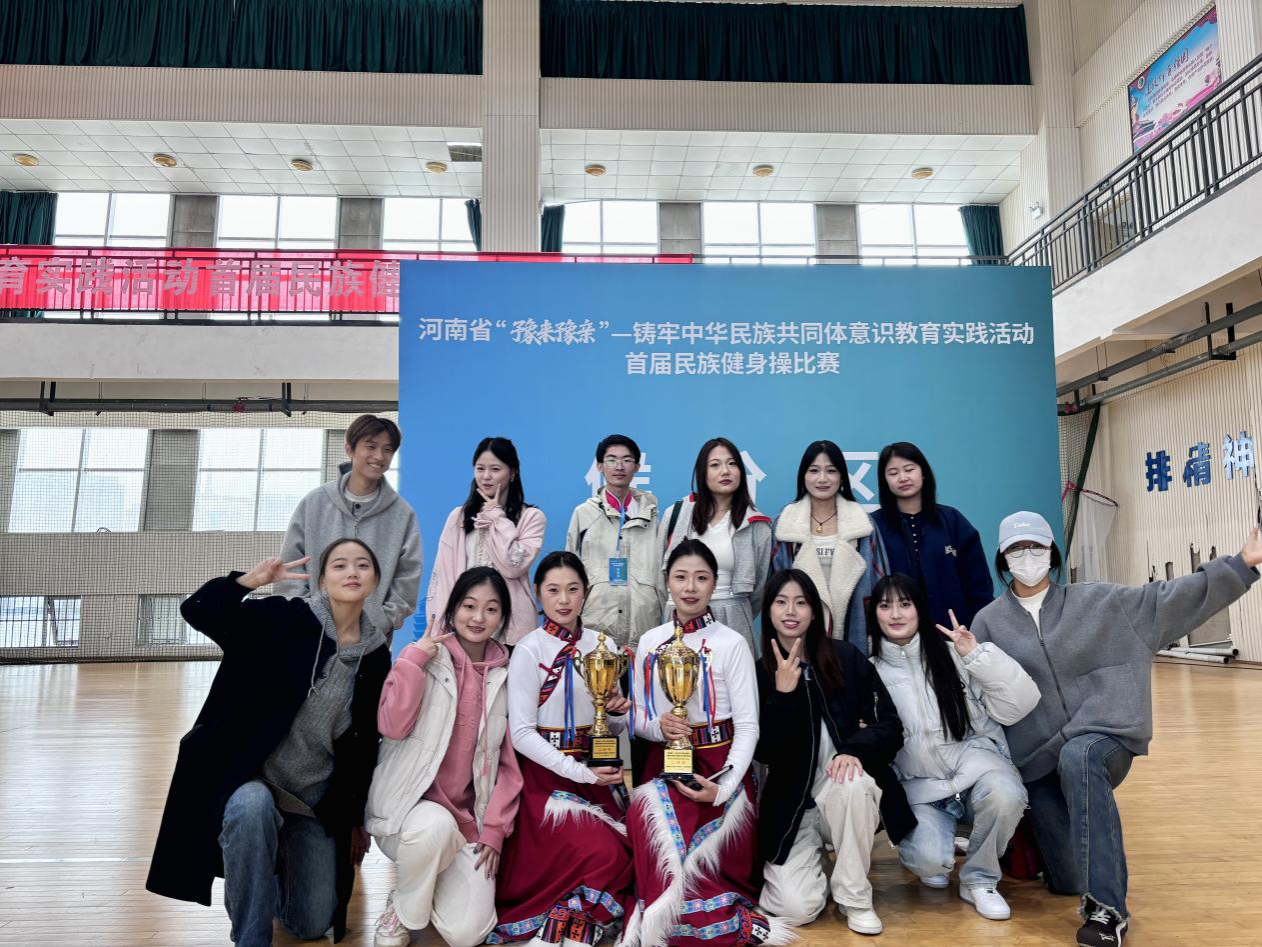 我校健身操代表队共有11名队员,其中有6名学生来自tyc234cc太阳成集团。作为河南省“铸牢中华民族共同体意识”主题下的首届民族健身操赛事,本次活动并无先例可循,我校团队从零起步,不断打磨完善作品。tyc234cc太阳成集团同学们怀着对舞蹈的热爱和坚持不懈的精神,积极投入日常训练,并与其他学院成员配合默契,动作整齐流畅。他们凭借作品《锦绣大中华》,赢得了现场评委和观众的好评,最终在民族健身操规定套路赛道荣获二等奖。