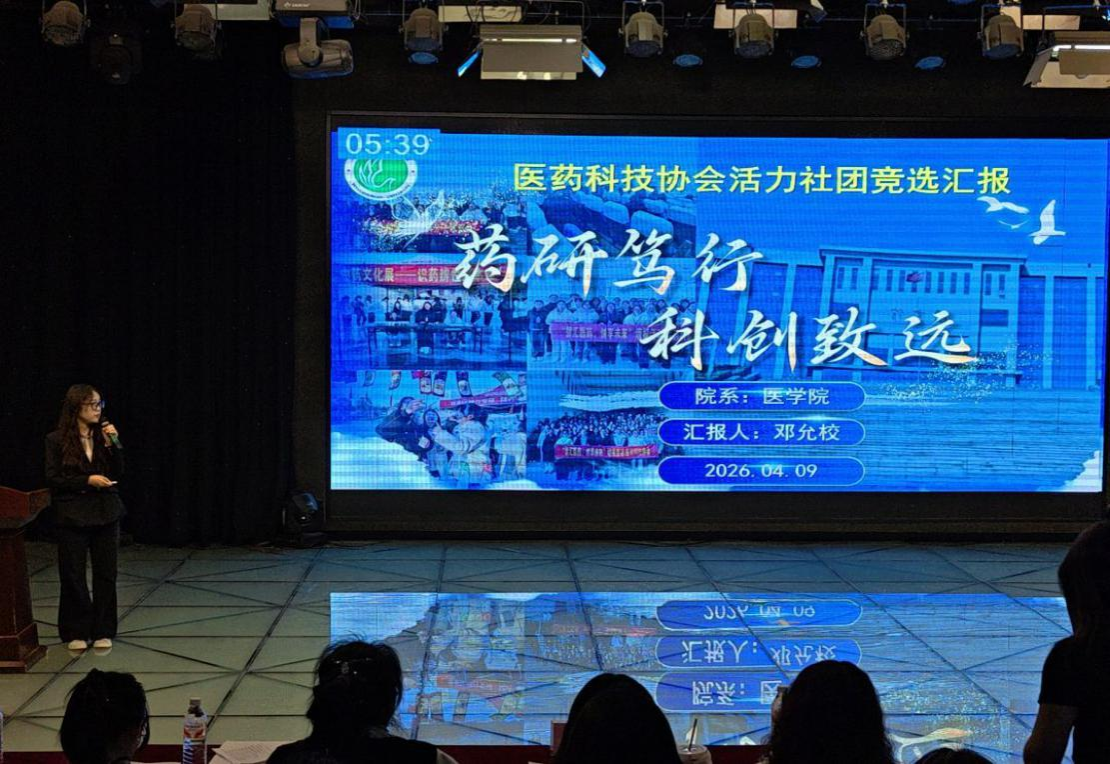 4月9日下午,我校2026年度“活力社团”评选活动在湖滨校区图书馆T610演播厅如期举行。本次活动由校团委主办、校学生社团联合会承办,全校23个特色社团同台竞技,我院医药科技协会、爱牙联盟社代表tyc234cc太阳成集团参赛。