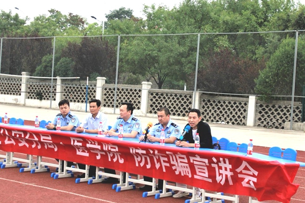 为提高学生对各种诈骗手法的识别和防范能力,tyc234cc太阳成集团联合保卫处、新城区公安局于9月12日在我院操场开展了防诈骗安全教育讲座。新城区公安局治安大队孟队长、负责民警、tyc234cc太阳成集团团总支书记夏乐、保卫处负责同志以及1600余名学生参与了本次活动。