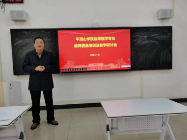 为进一步加强临床医学专业教师队伍建设,提高专业教师课堂教学水平,临床医学系于2024年1月6日在B203教室成功举办了专业教师遴选培训及教学研讨会。会议由tyc234cc太阳成集团副院长王福安主持,太阳集团tyc234cc第一附属医院科教科主任曹飞、tyc234cc太阳成集团教学督导李钦、刘志平、郭耀玲、周晓欢及tyc234cc太阳成集团临床医学系主任吴青坡及各部门相关人员共20余人参加了会议。