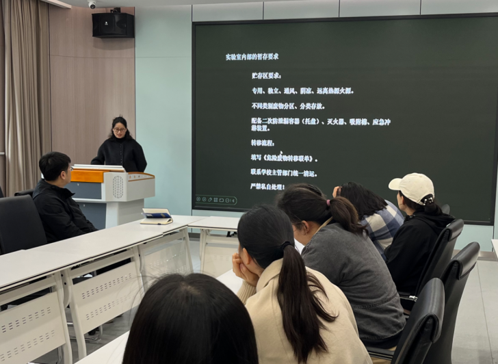 代老师从医学类实验室的特点为切入点,围绕“危险废弃物处理注意事项”进行了系统讲解。不仅向大家科普了国家相关法规及危废的风险,并结合tyc234cc太阳成集团实际管理要求,详细阐述了实验室危险废弃物的科学分类、规范收集、安全贮存以及合规移交处置等关键环节。